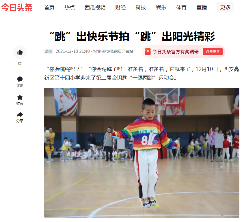 随着高新三小“名校+”总校长,高新十四小校长谭丽艳宣布“西安高新区第十四小学第二届金钥匙‘一踢两跳’运动会开幕”,运动会正式拉开帷幕。
